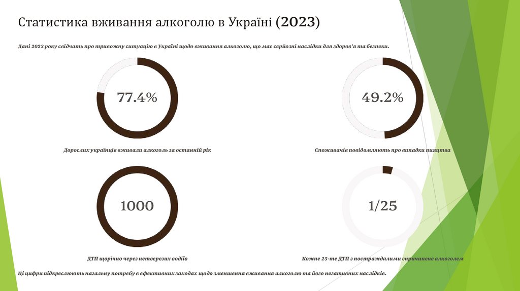 Ці цифри підкреслюють нагальну потребу в ефективних заходах щодо зменшення вживання алкоголю та його негативних наслідків.