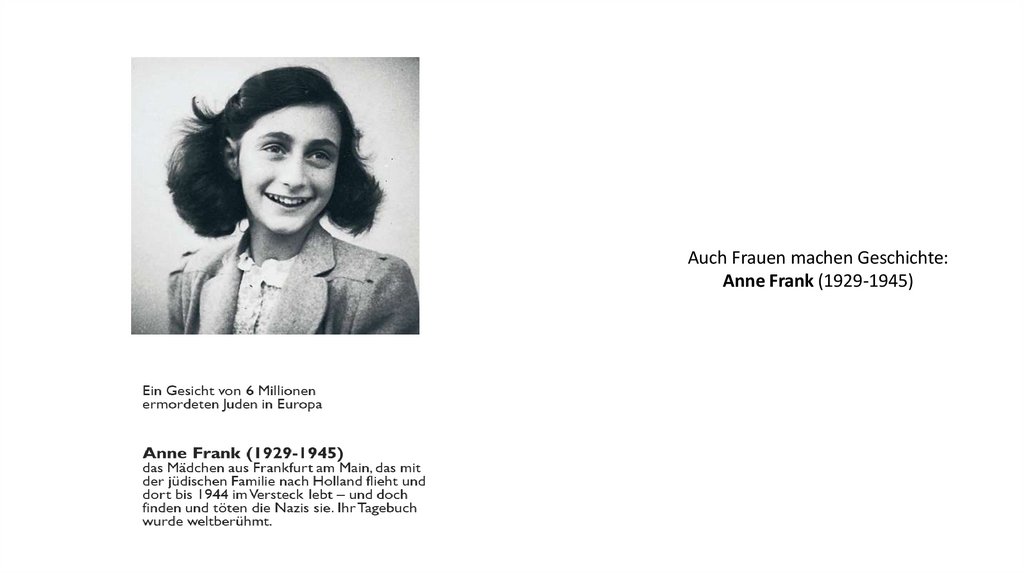 5) Wie hieß das junge Mädchen aus Frankfurt am