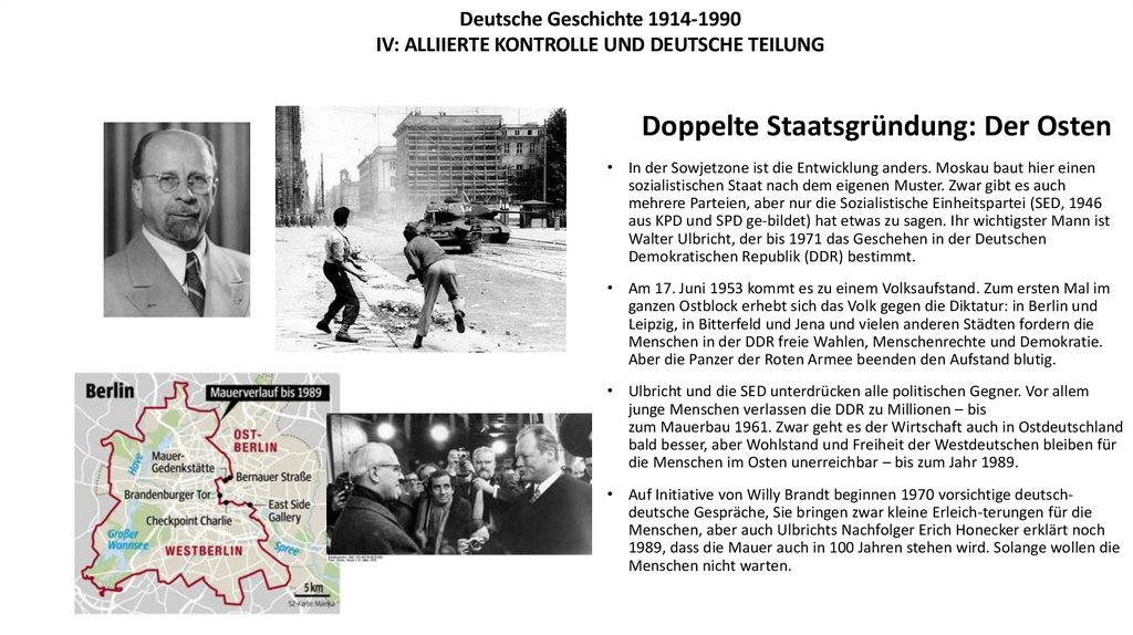 • Am 17. Juni 1953 kommt es zu einem Volksaufstand. Zum ersten Mal im
