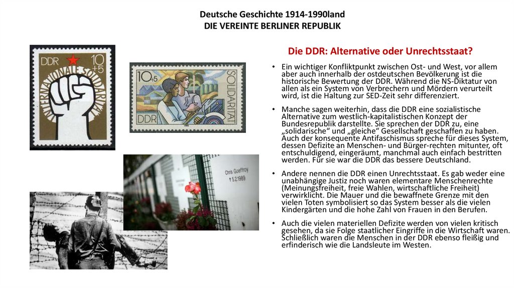 • Andere nennen die DDR einen Unrechtsstaat. Es gab weder eine