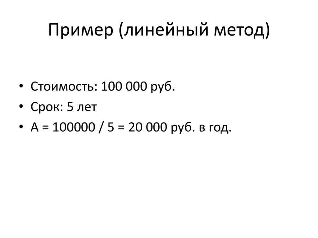 Пример (линейный метод)• Стоимость: 100 000 руб.