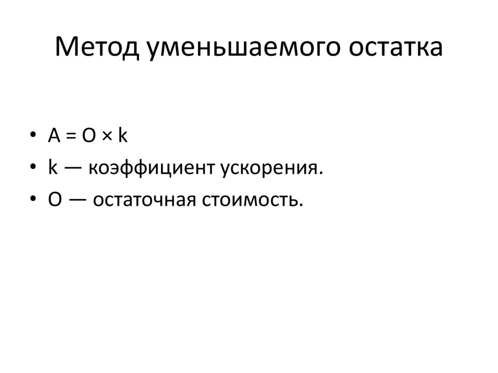 • Метод уменьшаемого остатка.