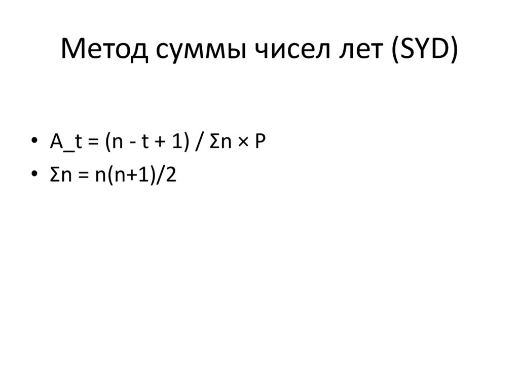 Метод суммы чисел лет (SYD)• A_t = (n - t + 1) / Σn × P