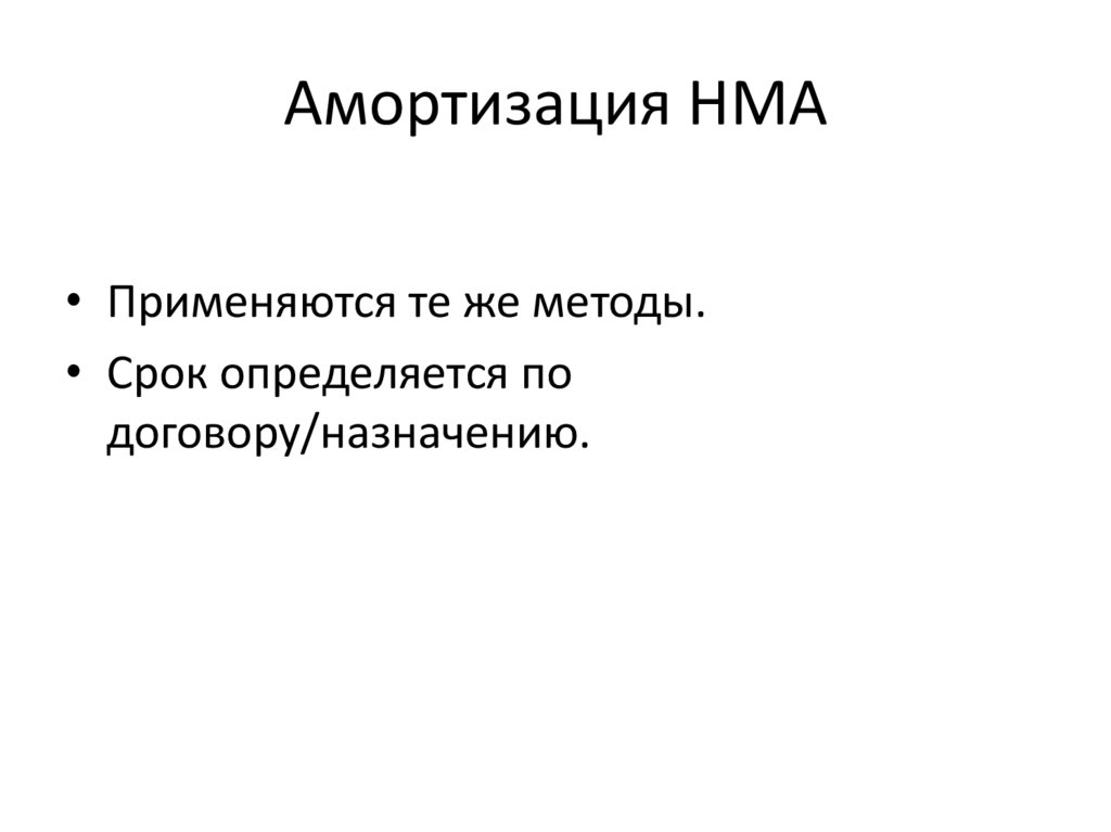 Амортизация НМА• Применяются те же методы.