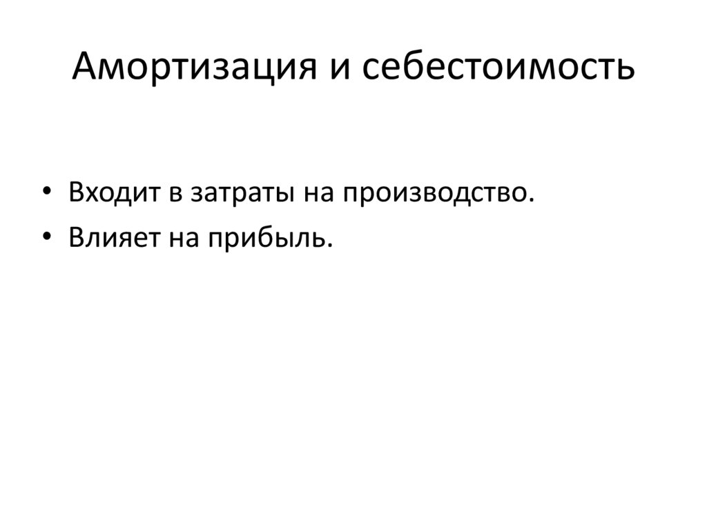 Амортизация и себестоимость• Входит в затраты на производство.