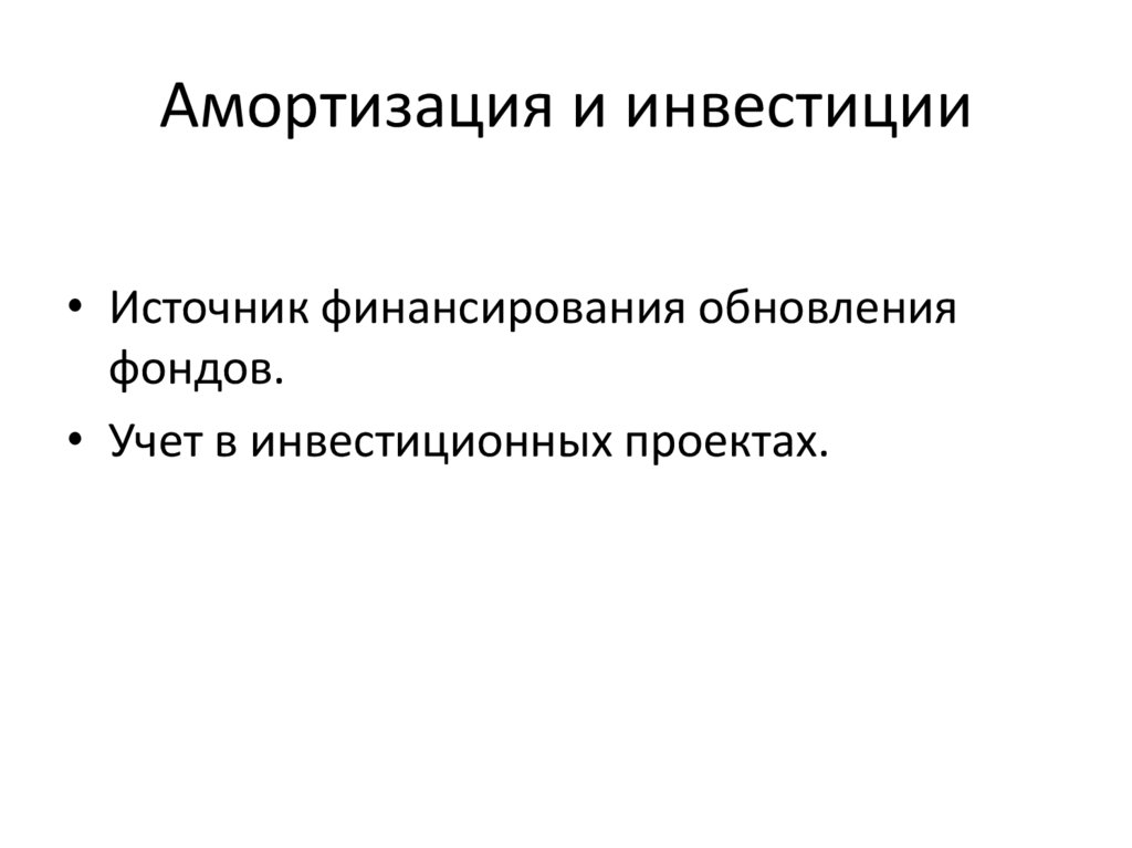 Амортизация и инвестиции• Источник финансирования обновления
