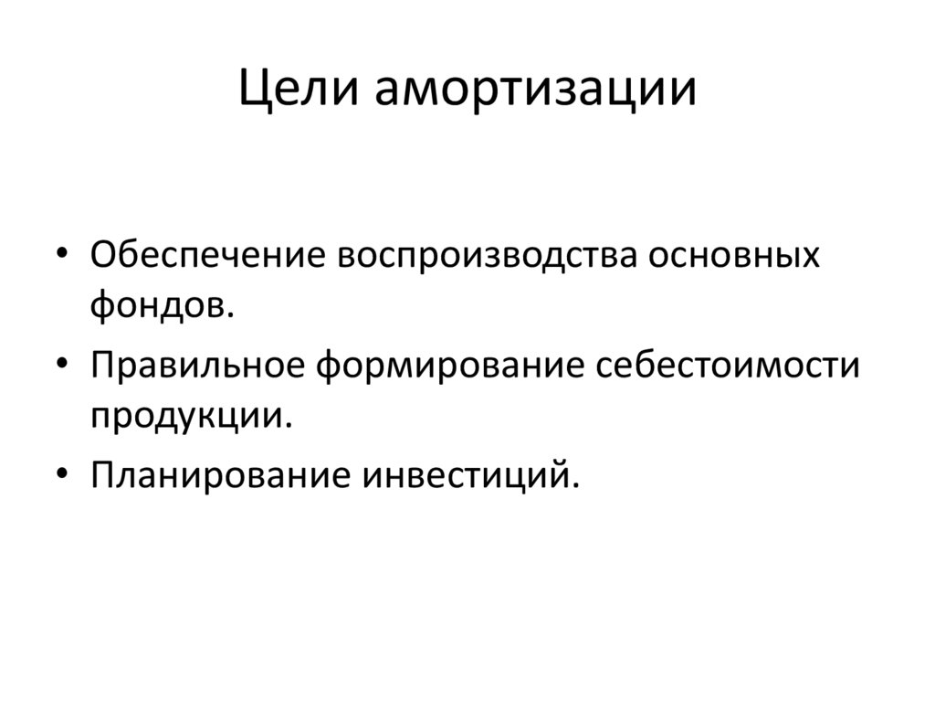 Цели амортизации• Обеспечение воспроизводства основных
