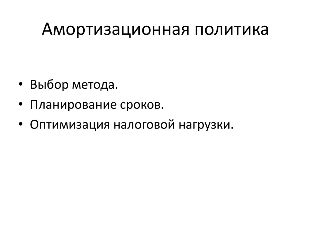 Амортизационная политика• Выбор метода.
