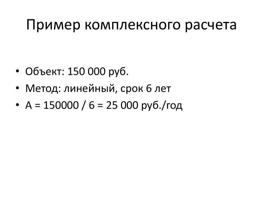 Пример комплексного расчета• Объект: 150 000 руб.