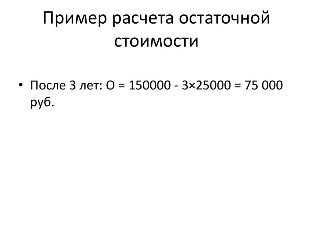 Пример расчета остаточнойстоимости