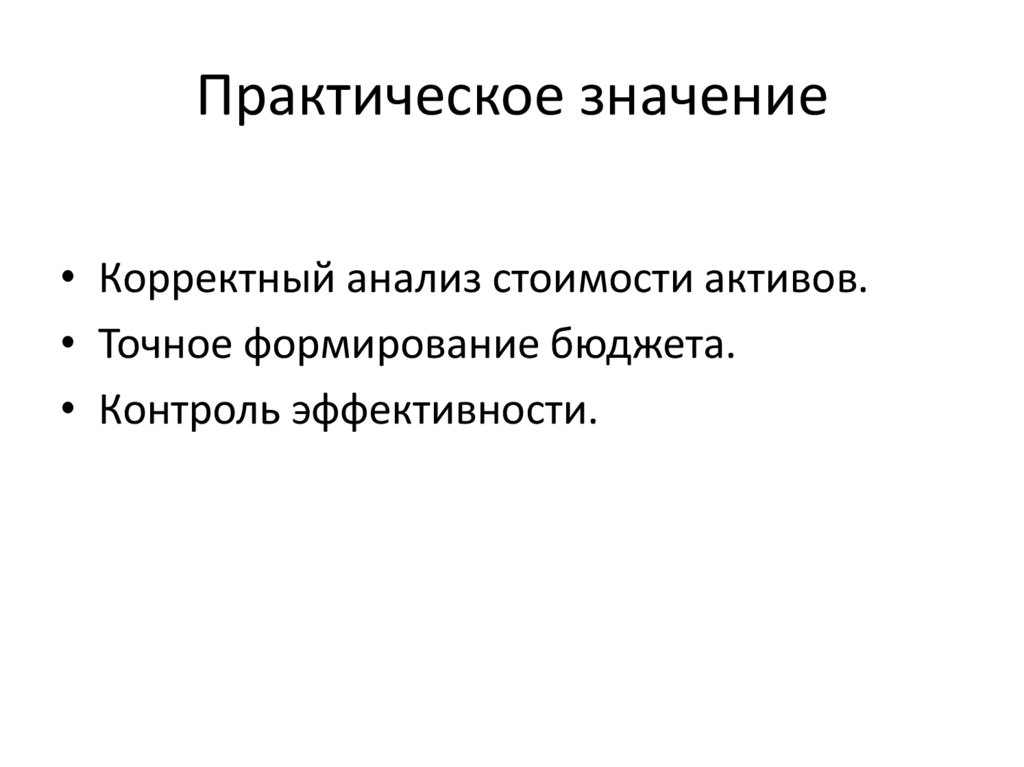 Практическое значение• Корректный анализ стоимости активов.