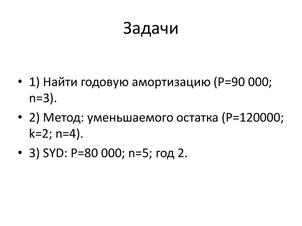Задачи• 1) Найти годовую амортизацию (P=90 000;