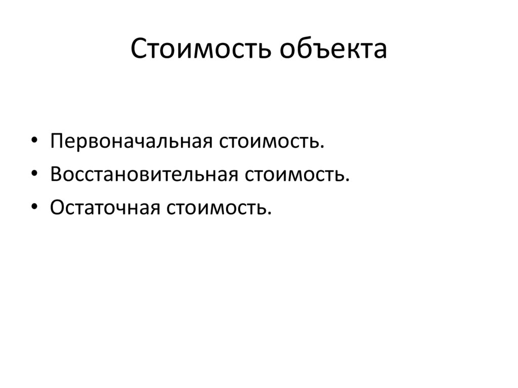 Стоимость объекта• Первоначальная стоимость.
