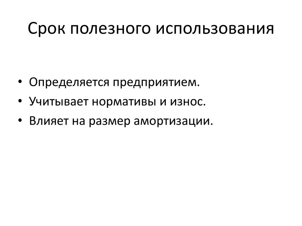 Срок полезного использования• Определяется предприятием.