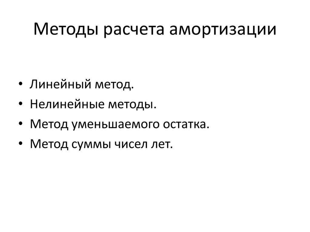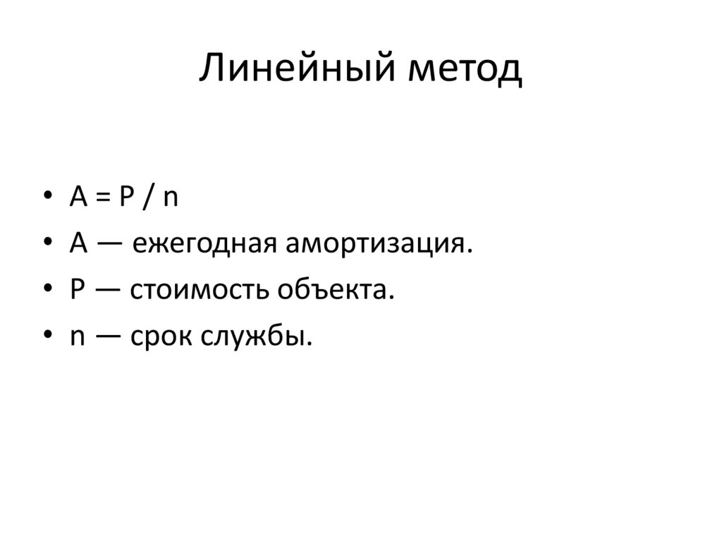 Методы расчета амортизации• Линейный метод.