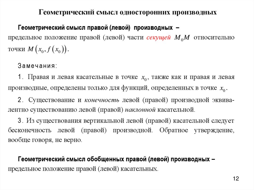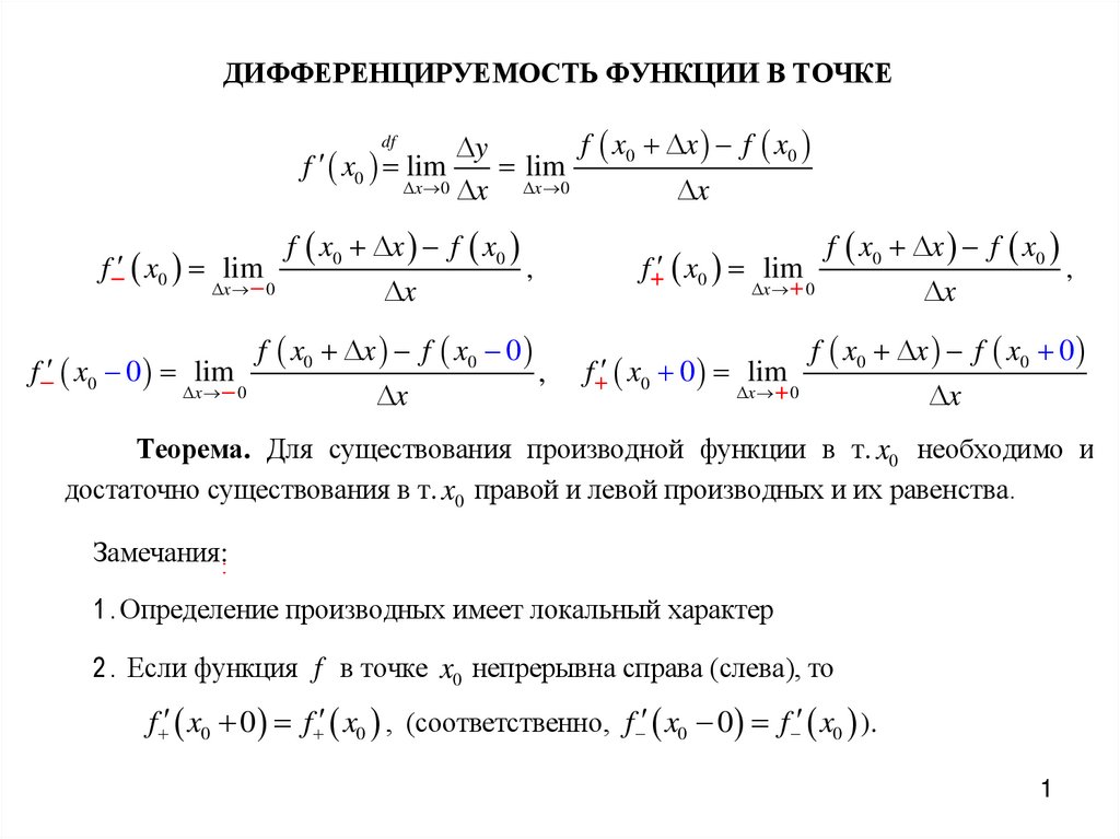 1 . Определение производных имеет локальный характер