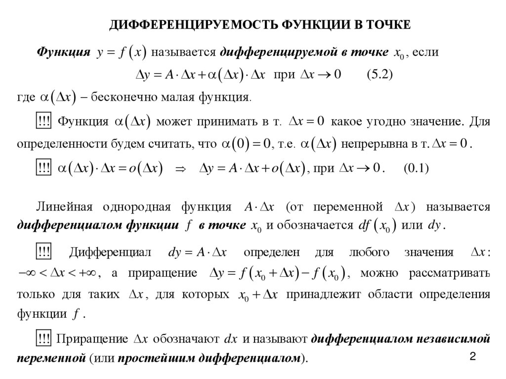 f x f x0 A x x0 o x x0 , x x0 .