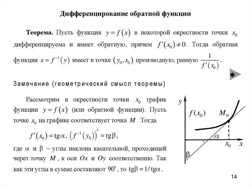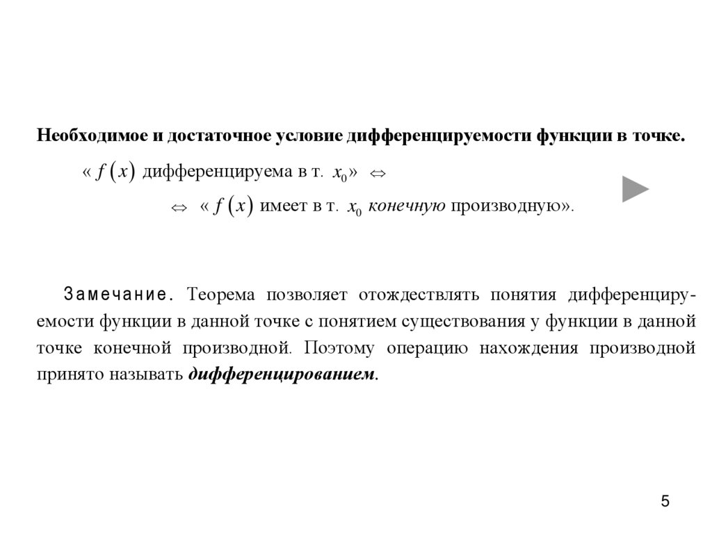 Необходимое и достаточное условие дифференцируемости функции в точке.« f x дифференцируема в т. x0 »