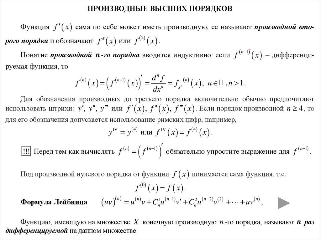 производных 3,4, … порядков необходимо знать описанную технологию.