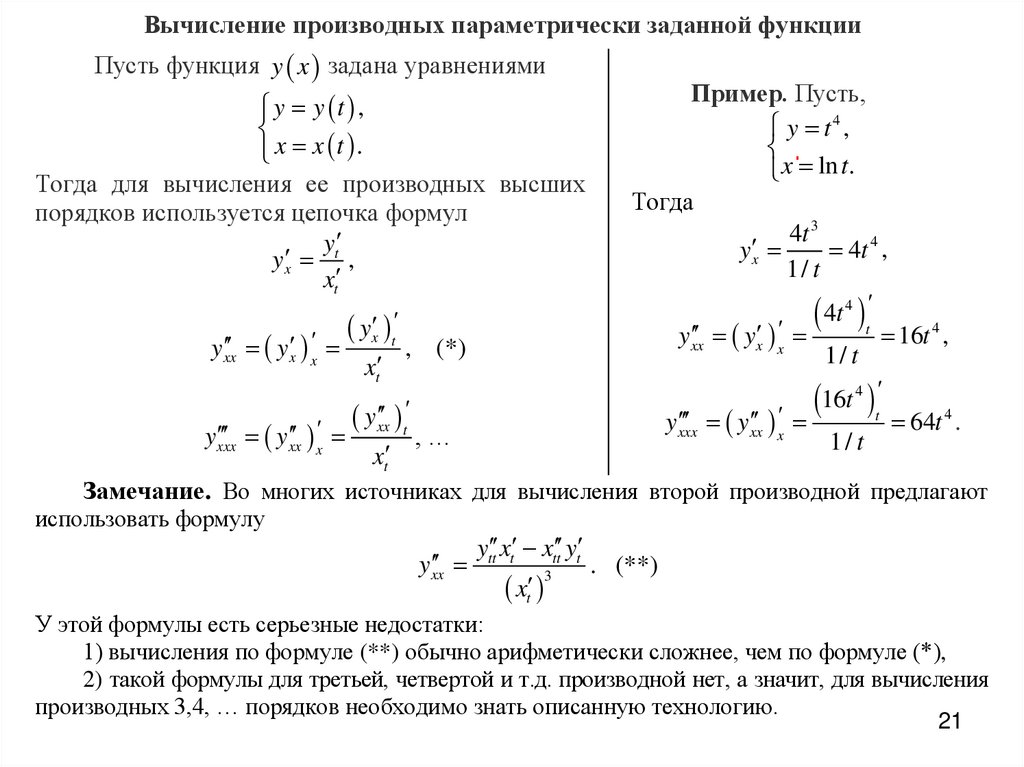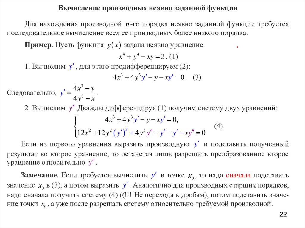 значение x0 в (3), а потом выразить y . Аналогично для производных старших порядков,