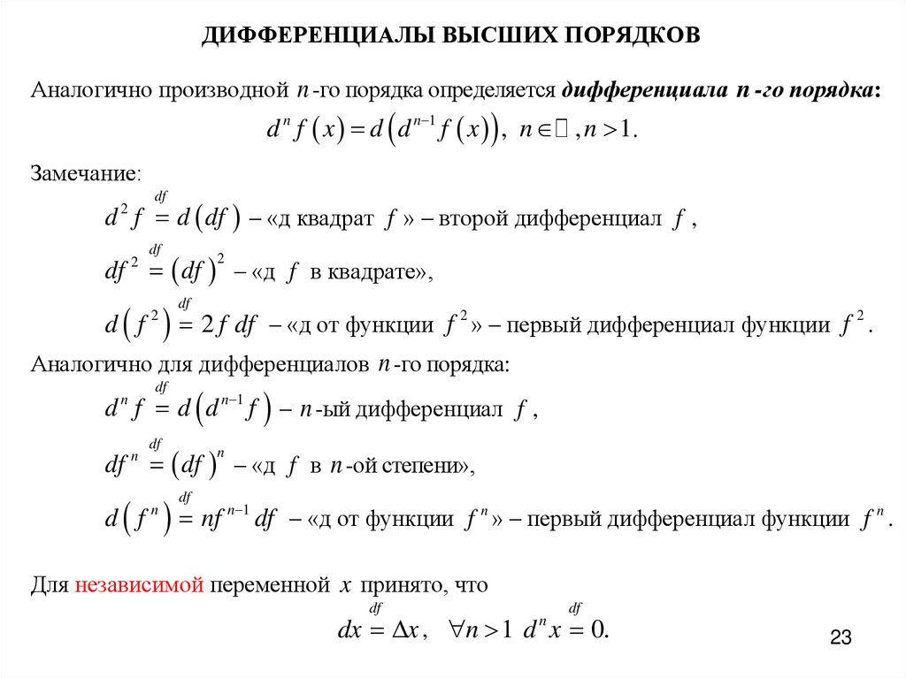 d f d d n 1 f – n -ый дифференциал f ,
