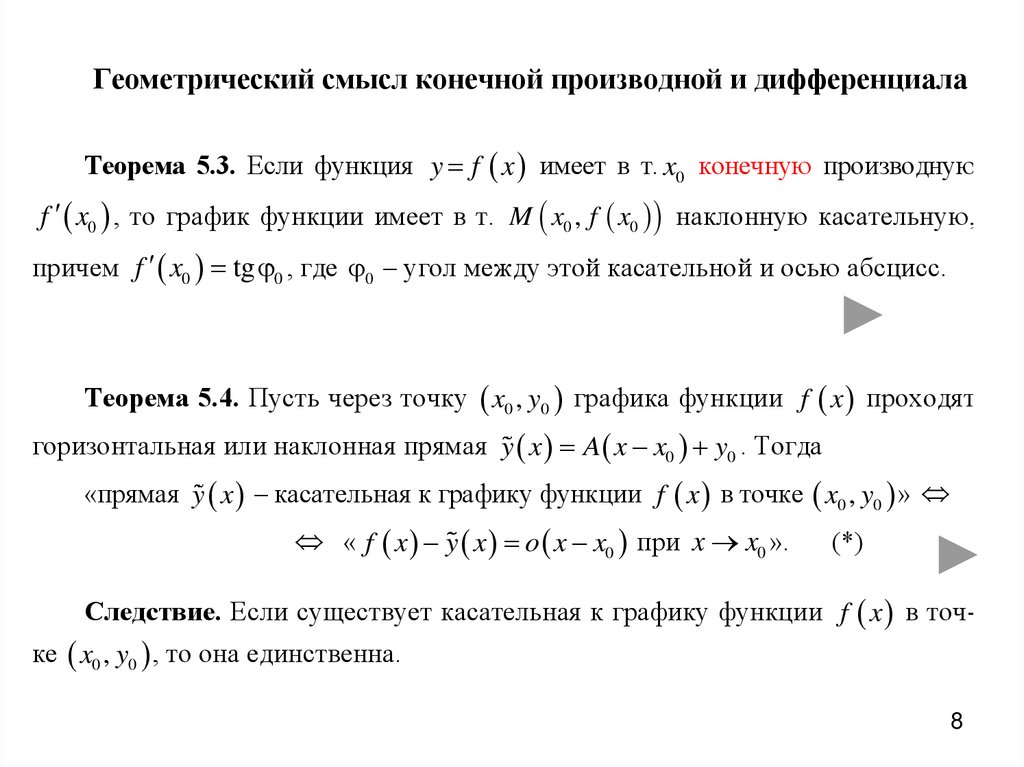« f x имеет в т. x0 конечную производную».
