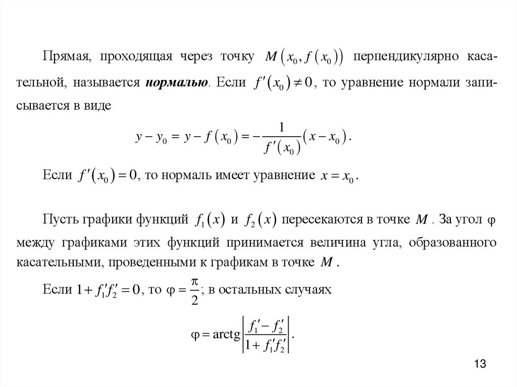 2) уравнение наклонной касательной