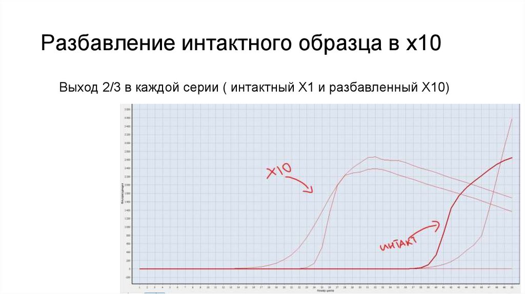 Выход 2/3 в каждой серии ( интактный X1 и разбавленный X10)2. Эксперимент с разведением образца