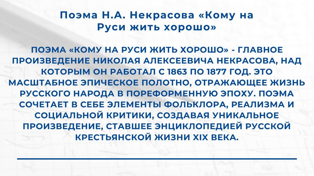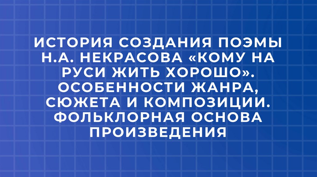 ИСТОРИЯ СОЗДАНИЯ ПОЭМЫН.А. НЕКРАСОВА «КОМУ НА