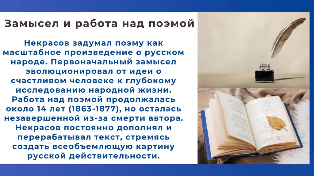 Замысел и работа над поэмойНекрасов задумал поэму как
