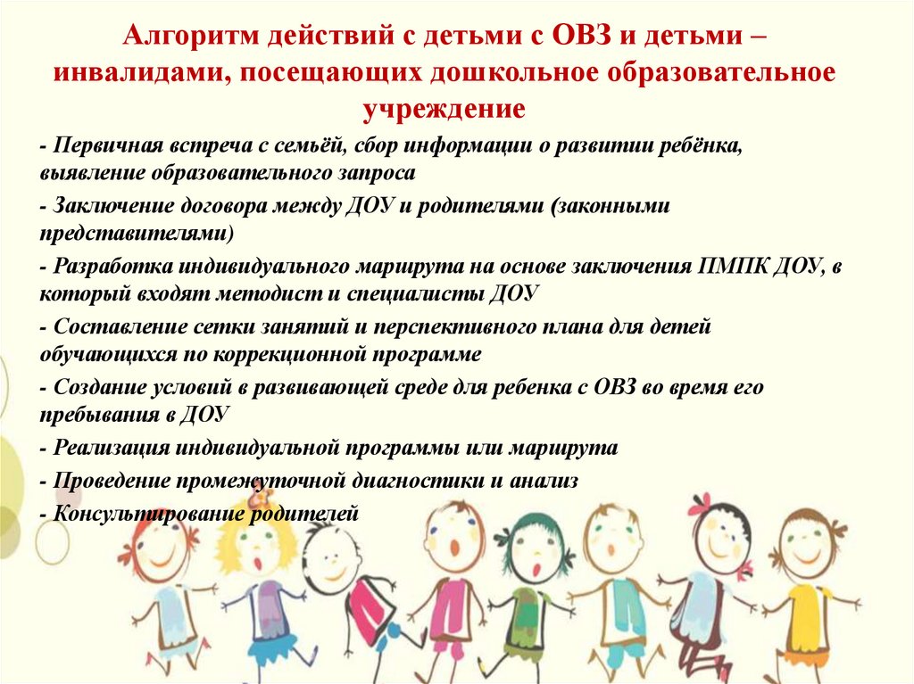 Алгоритм действий с детьми с ОВЗ и детьми –инвалидами, посещающих дошкольное образовательное
