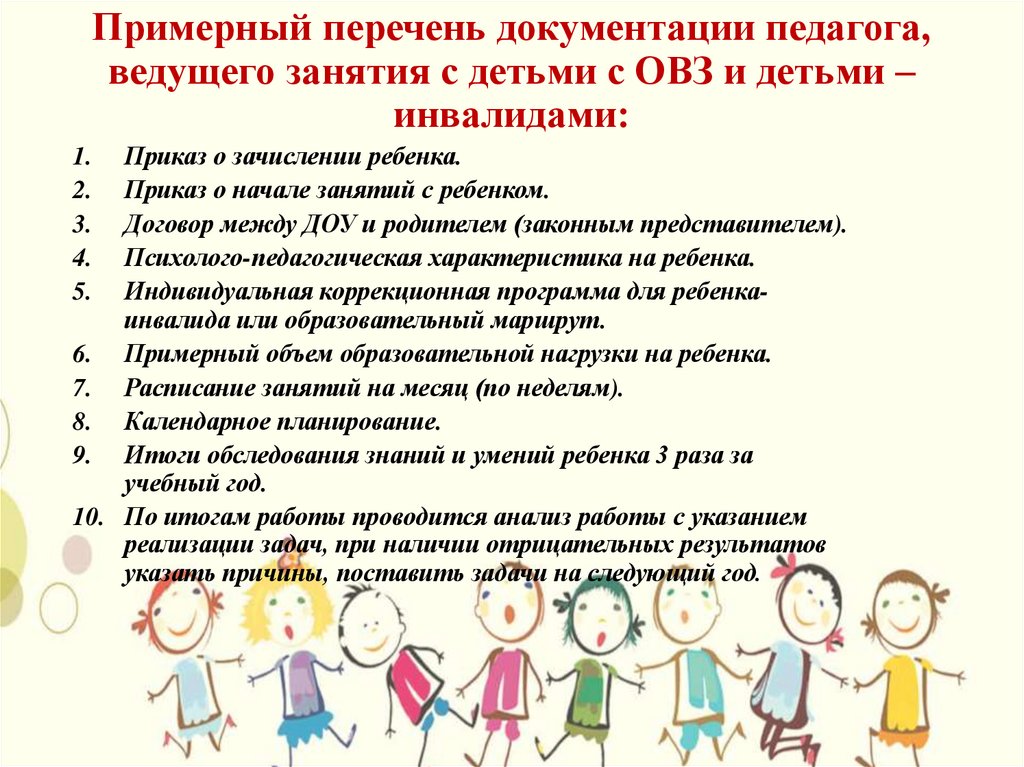 Примерный перечень документации педагога,ведущего занятия с детьми с ОВЗ и детьми –