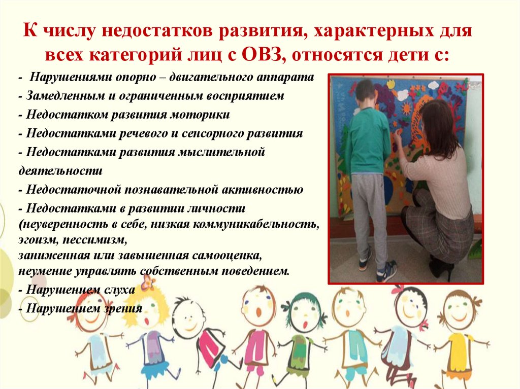 К числу недостатков развития, характерных длявсех категорий лиц с ОВЗ, относятся дети с: