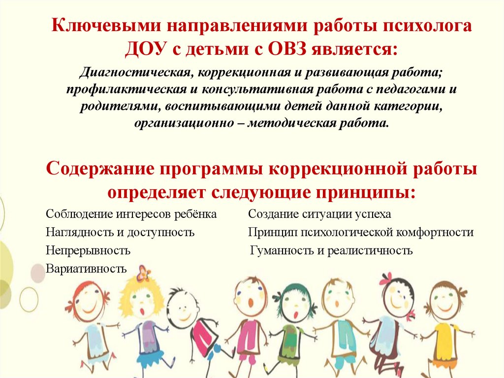 Ключевыми направлениями работы психологаДОУ с детьми с ОВЗ является: