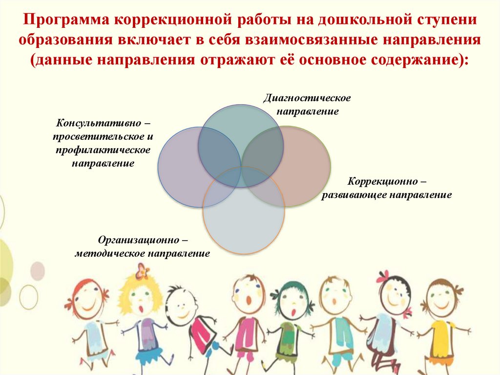 Программа коррекционной работы на дошкольной ступениобразования включает в себя взаимосвязанные направления