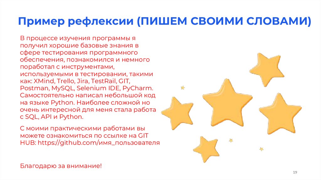 Пример рефлексии (ПИШЕМ СВОИМИ СЛОВАМИ)В процессе изучения программы я