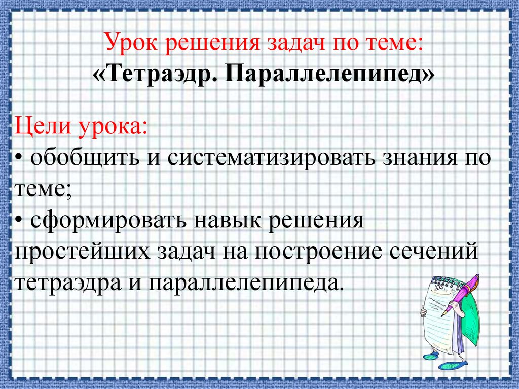 Урок решения задач по теме:«Тетраэдр. Параллелепипед»