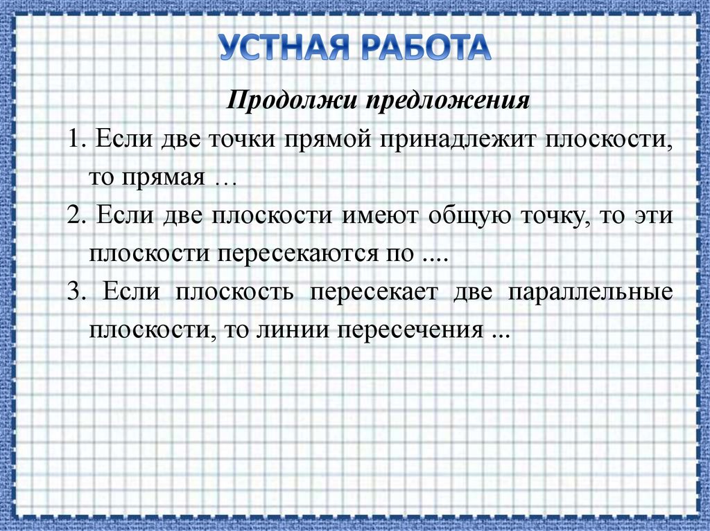 Продолжи предложения1. Если две точки прямой принадлежит плоскости,