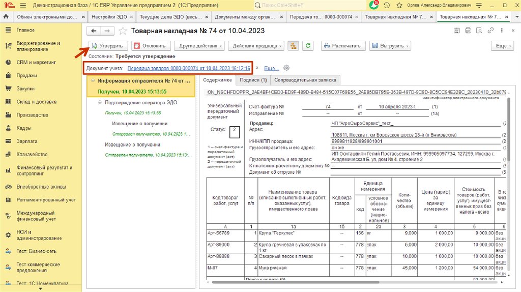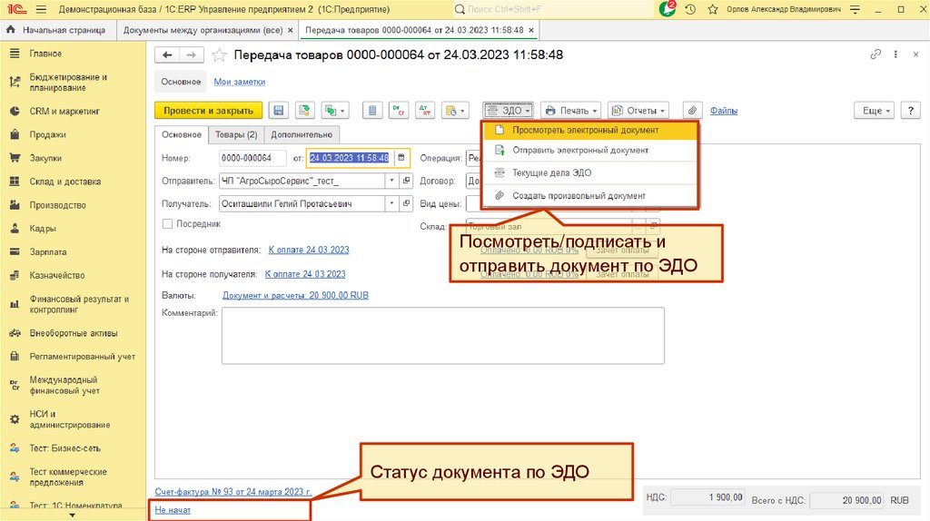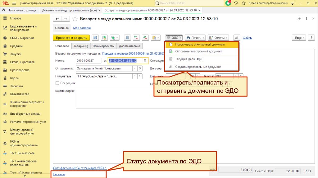 5. Передача документов интеркампани через оператора ЭДО