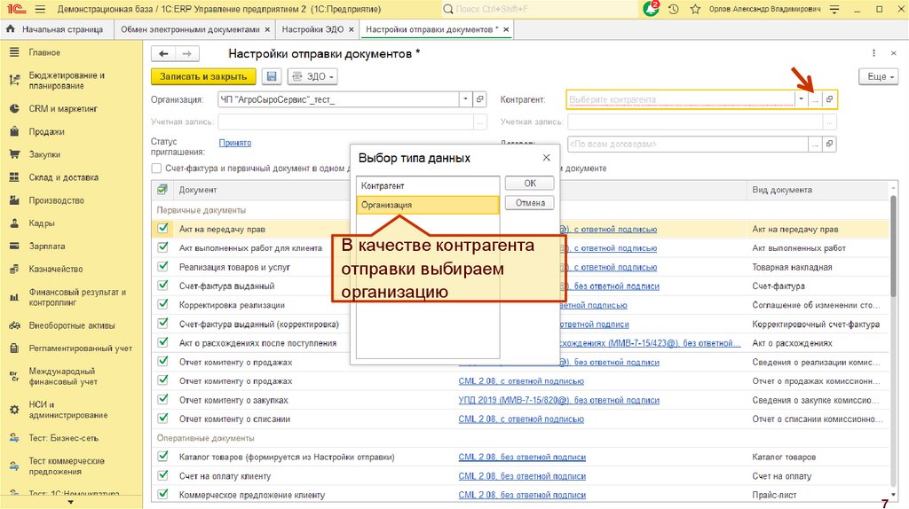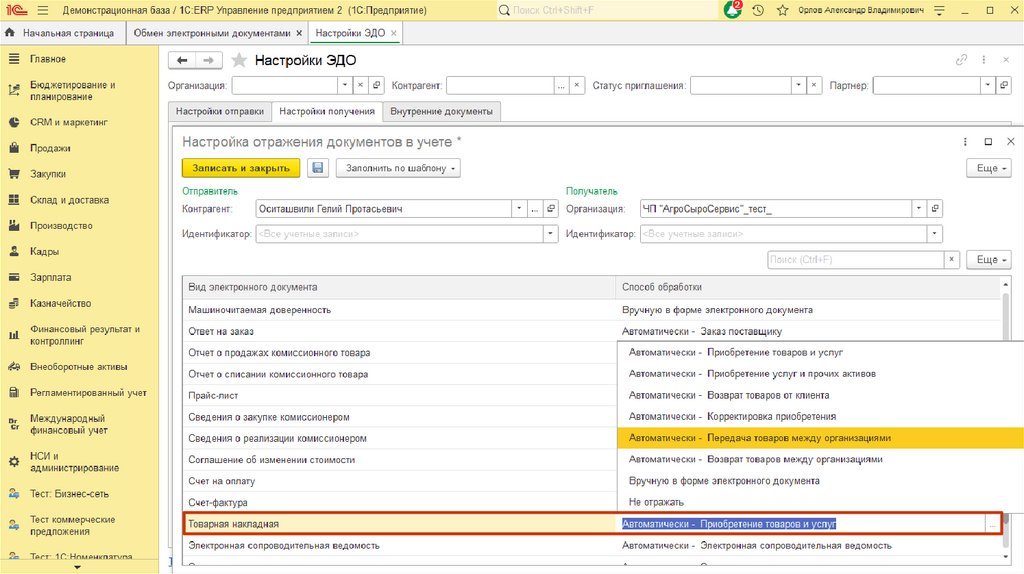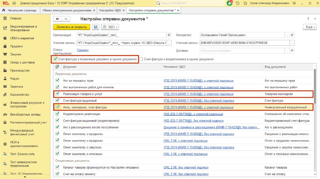 1C:ERP Управление предприятиемОбмен ЭД интеркампани через оператора ЭДО