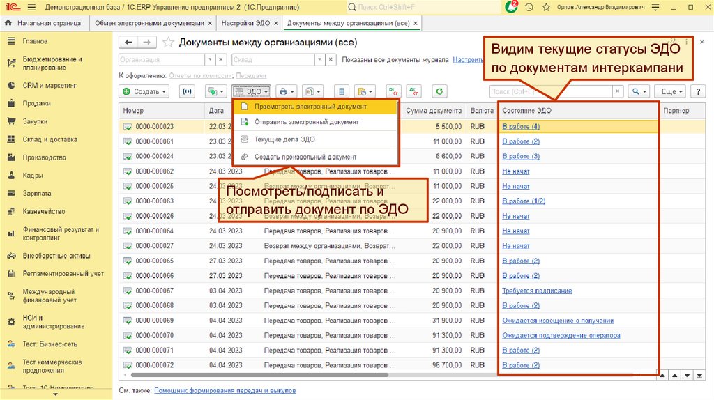 Видим текущие статусы ЭДОпо документам интеркампани