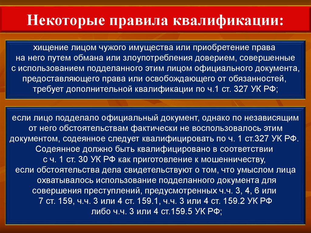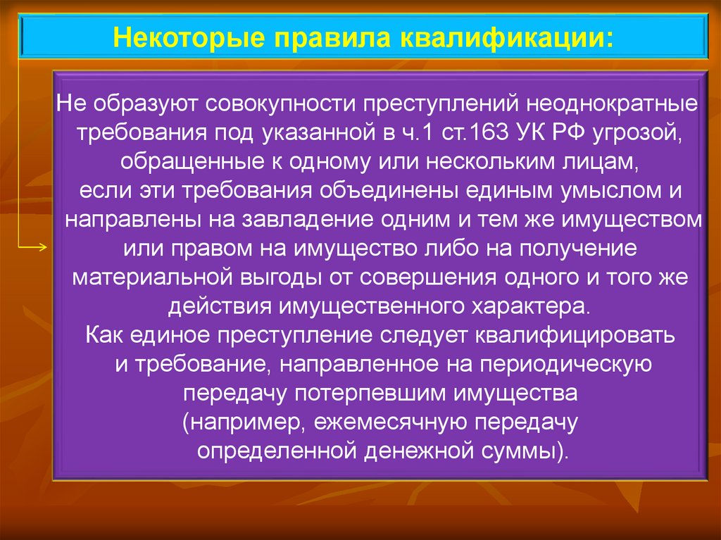 Некоторые правила квалификации:Не образуют совокупности преступлений неоднократные