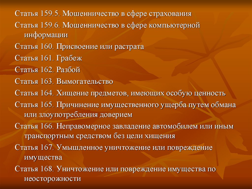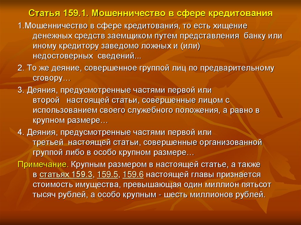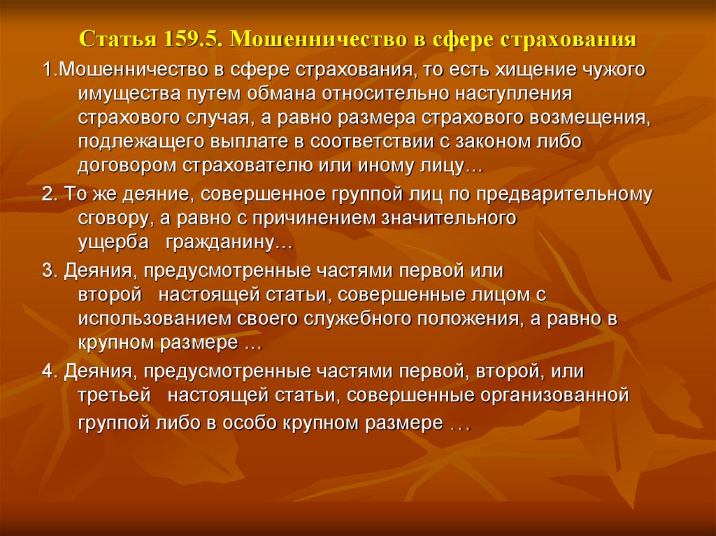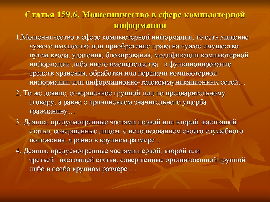 Статья 159.5. Мошенничество в сфере страхованияСтатья 159.6. Мошенничество в сфере компьютерной