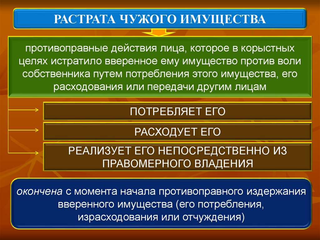 РАСТРАТА ЧУЖОГО ИМУЩЕСТВАпротивоправные действия лица, которое в корыстных