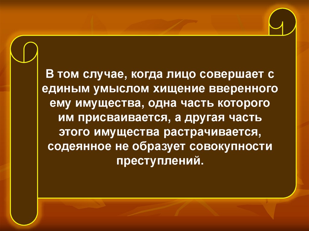 В том случае, когда лицо совершает сединым умыслом хищение вверенного