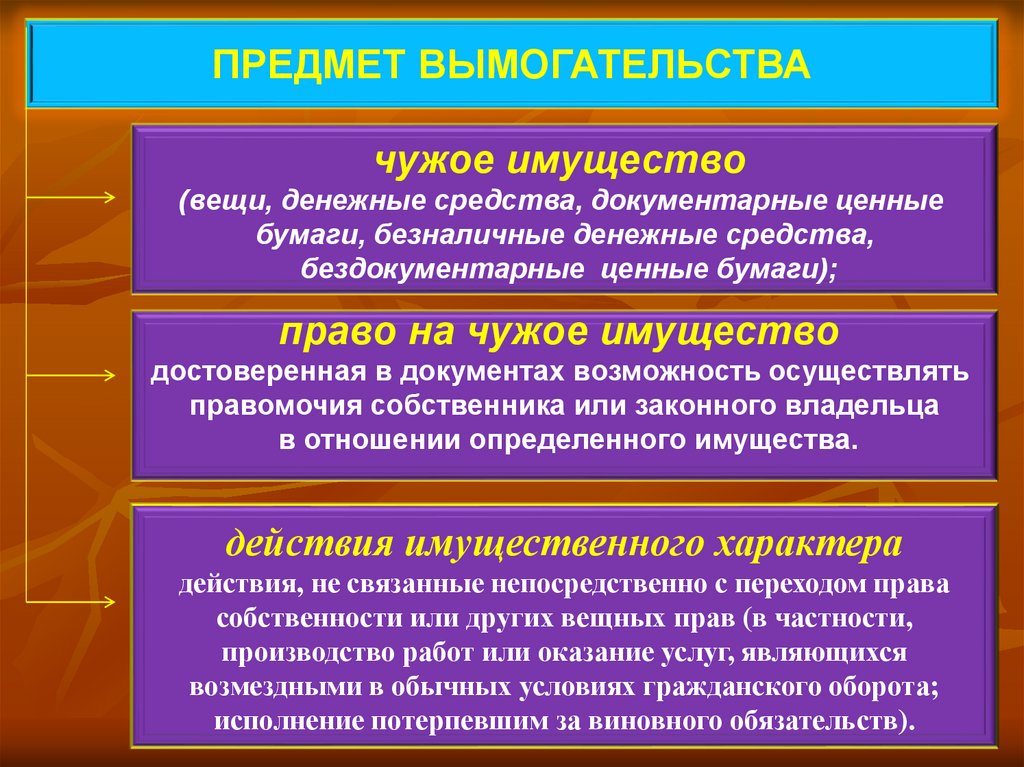ПРЕДМЕТ ВЫМОГАТЕЛЬСТВАчужое имущество