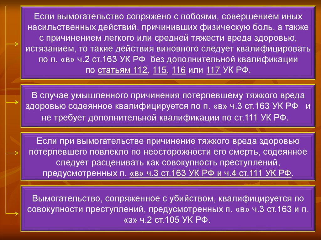 Если вымогательство сопряжено с побоями, совершением иныхнасильственных действий, причинивших физическую боль, а также