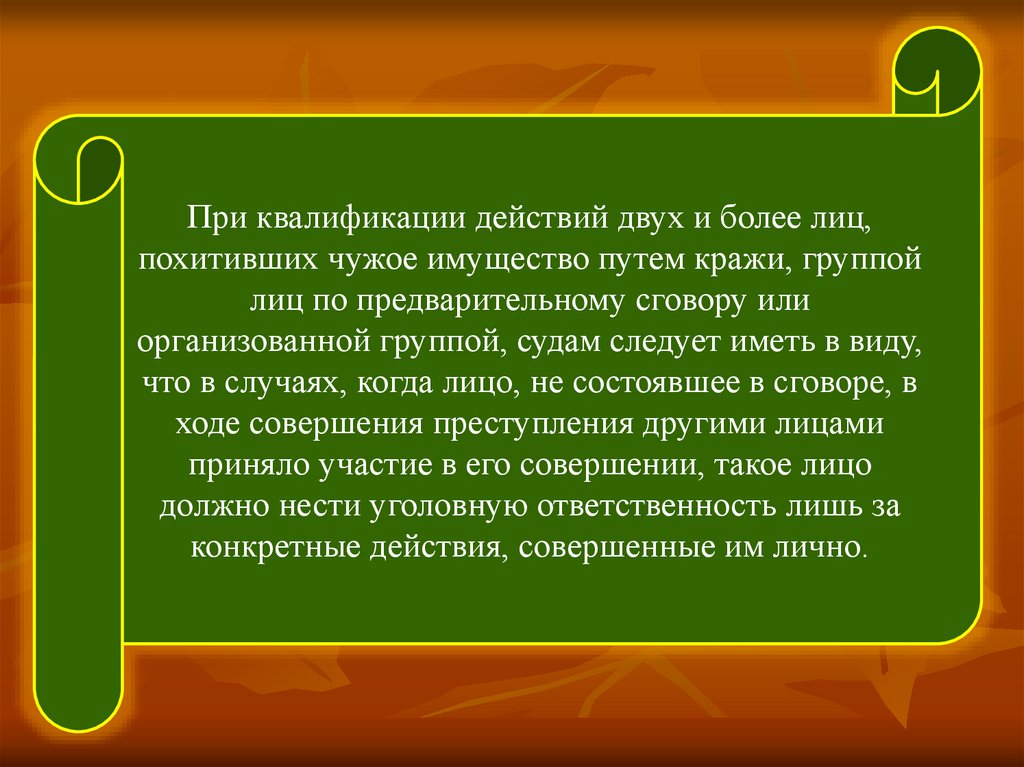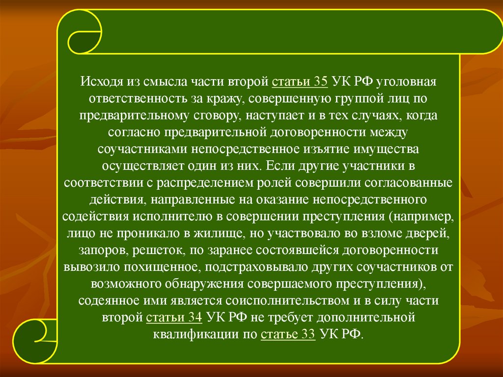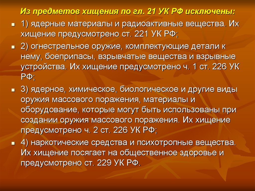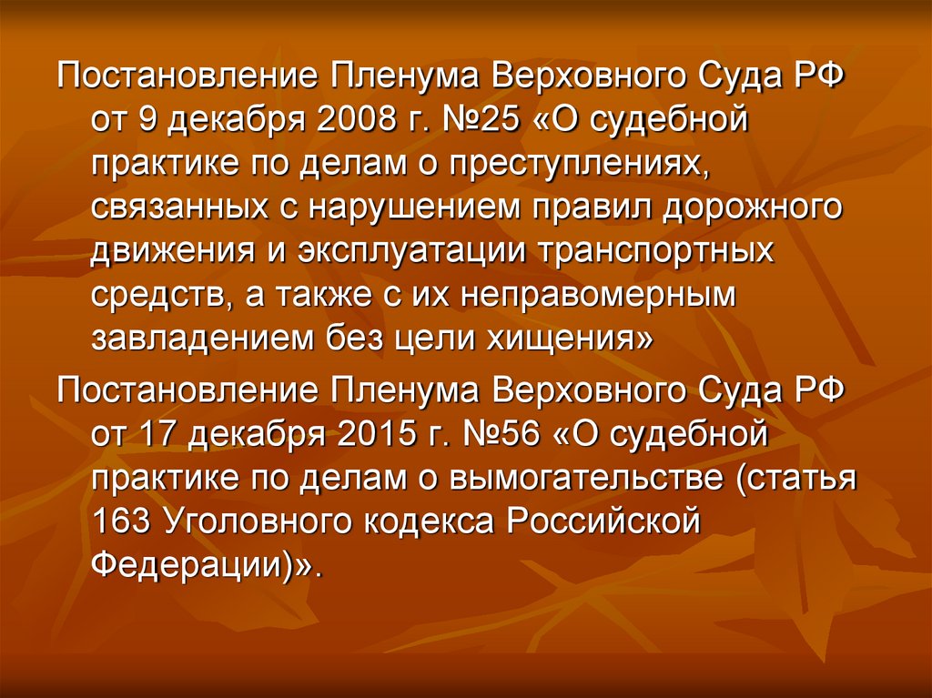 1.Нормативный материал: Глава 21, ст. ст. 158168 Уголовного кодекса РФ.2. Судебная практика: