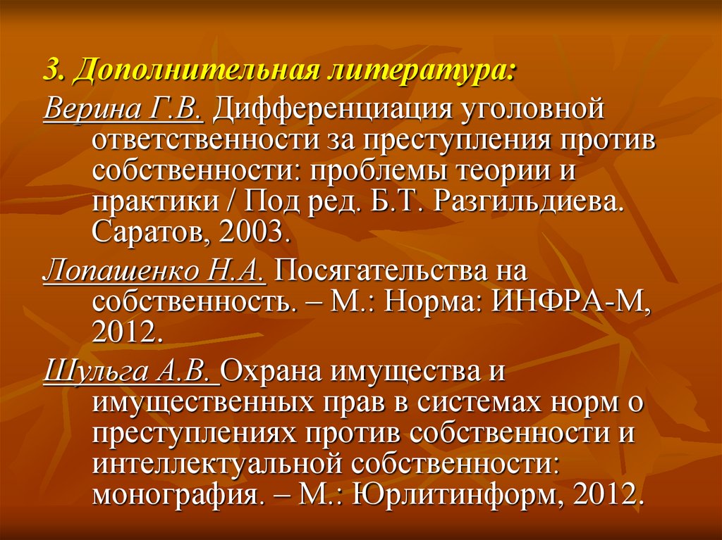 3. Дополнительная литература:Верина Г.В. Дифференциация уголовной