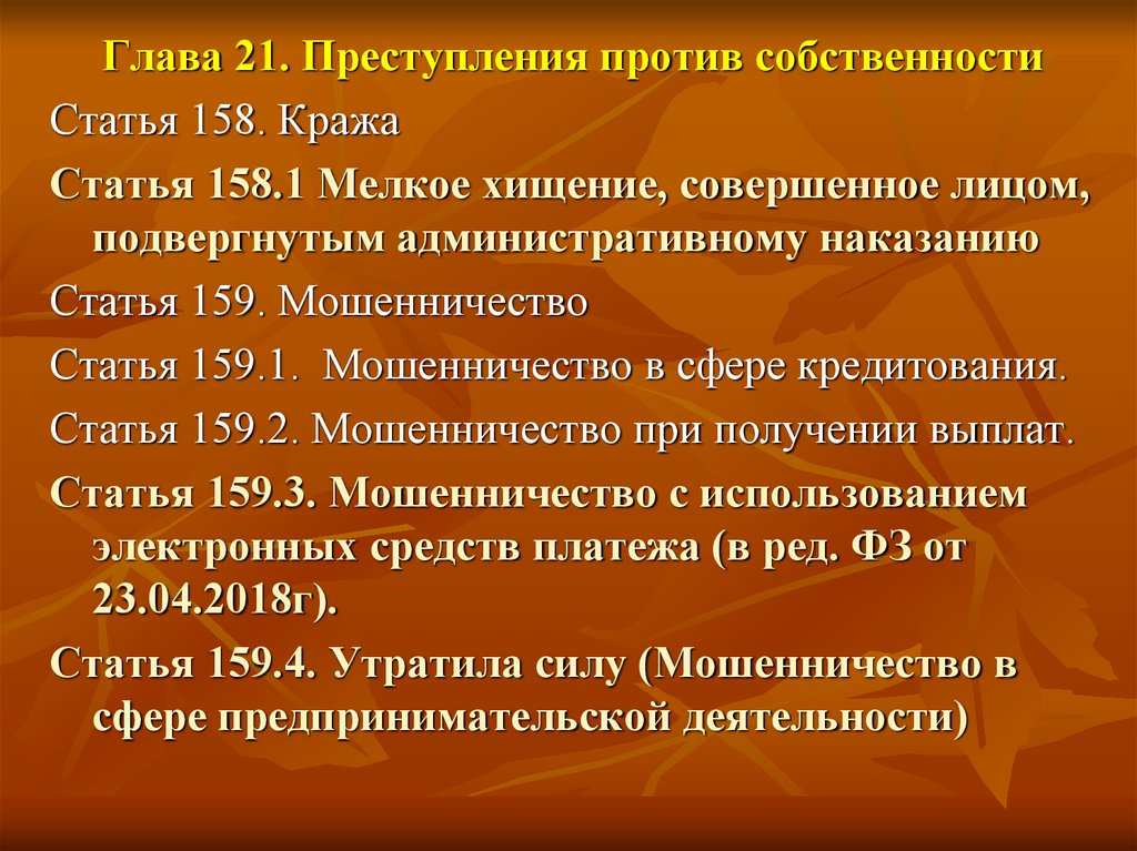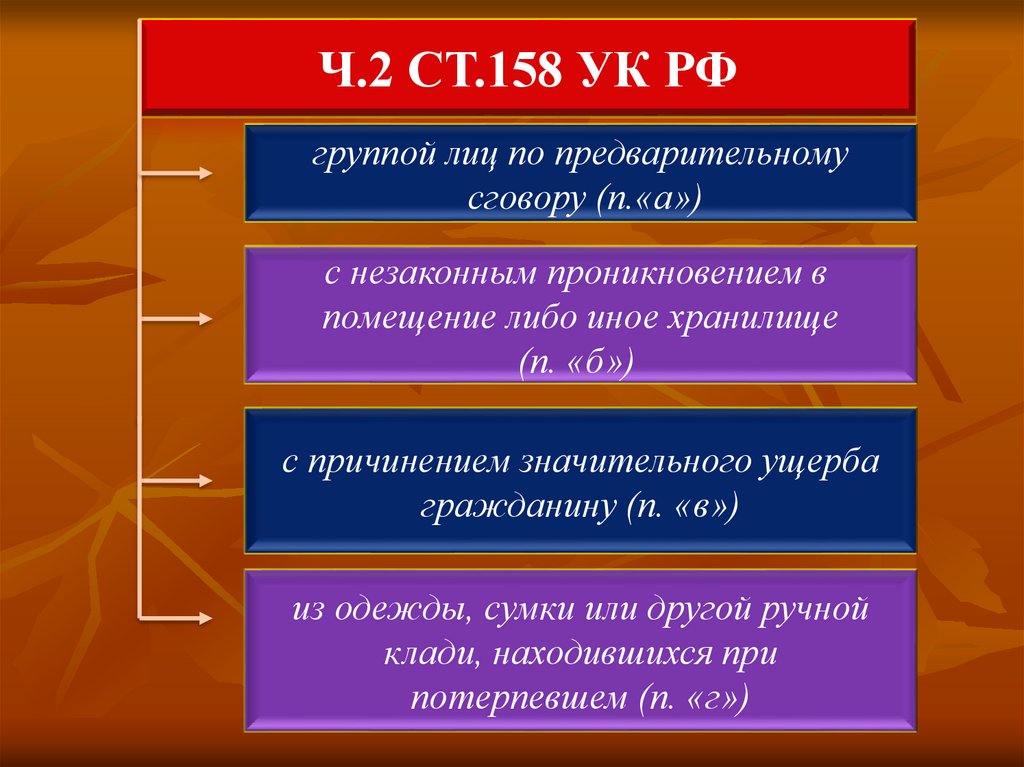 Глава 21. Преступления против собственностиСтатья 158. Кража